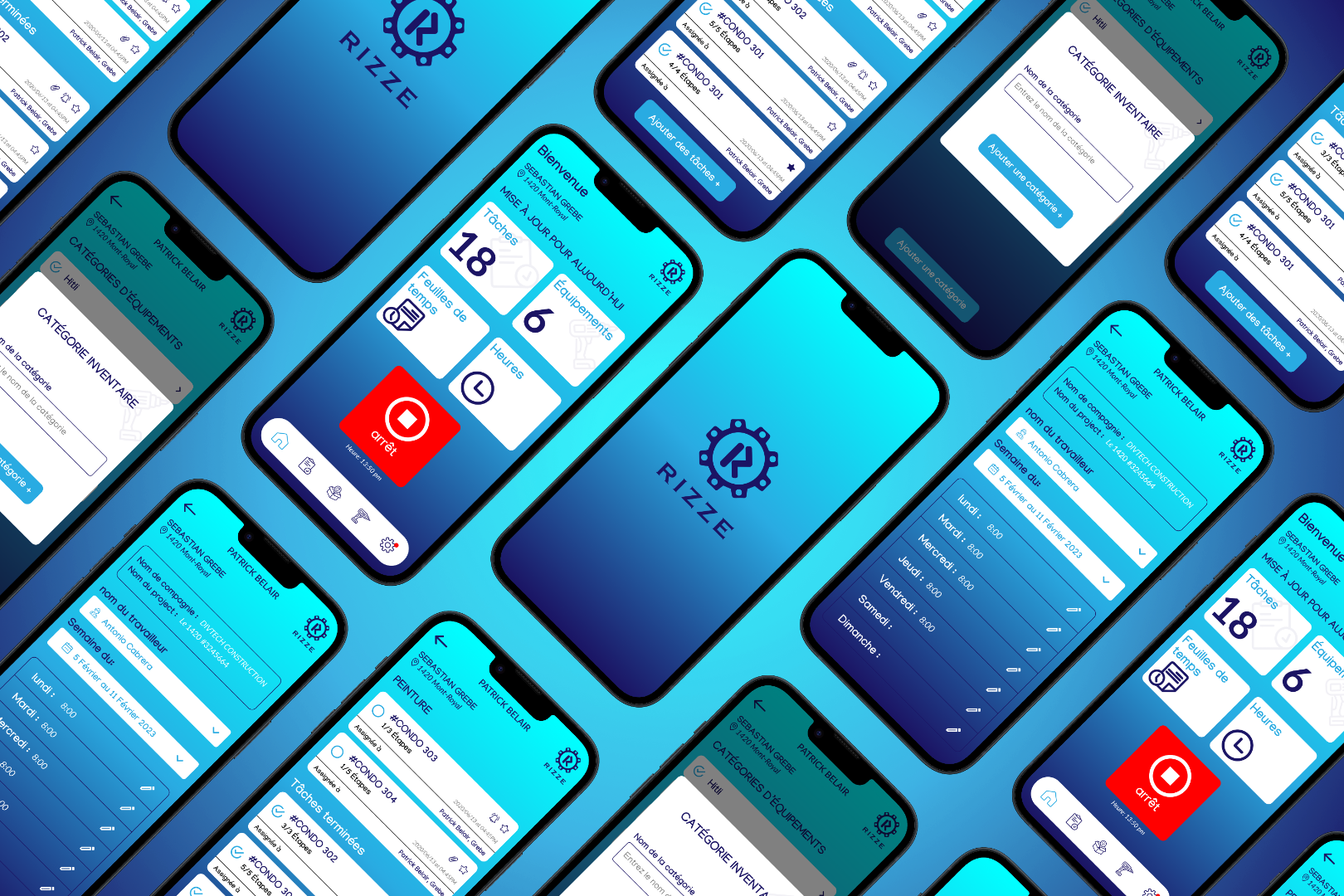 Rizze is a construction management app that helps companies organize workers, resources, and equipment. It reduces material waste, tracks punch‑in and punch‑out times, and calculates salaries accurately based on attendance and work hours.